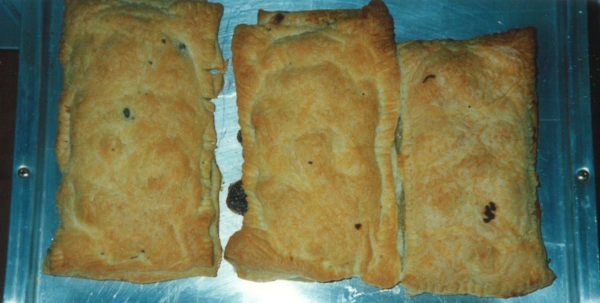 Erst zu Hause breitet man die leicht voneinander zu lösenden Blätterteigtafeln auf dem Küchentisch aus, um sie leicht antauen zu lassen, während man sich der Füllung widmet.
