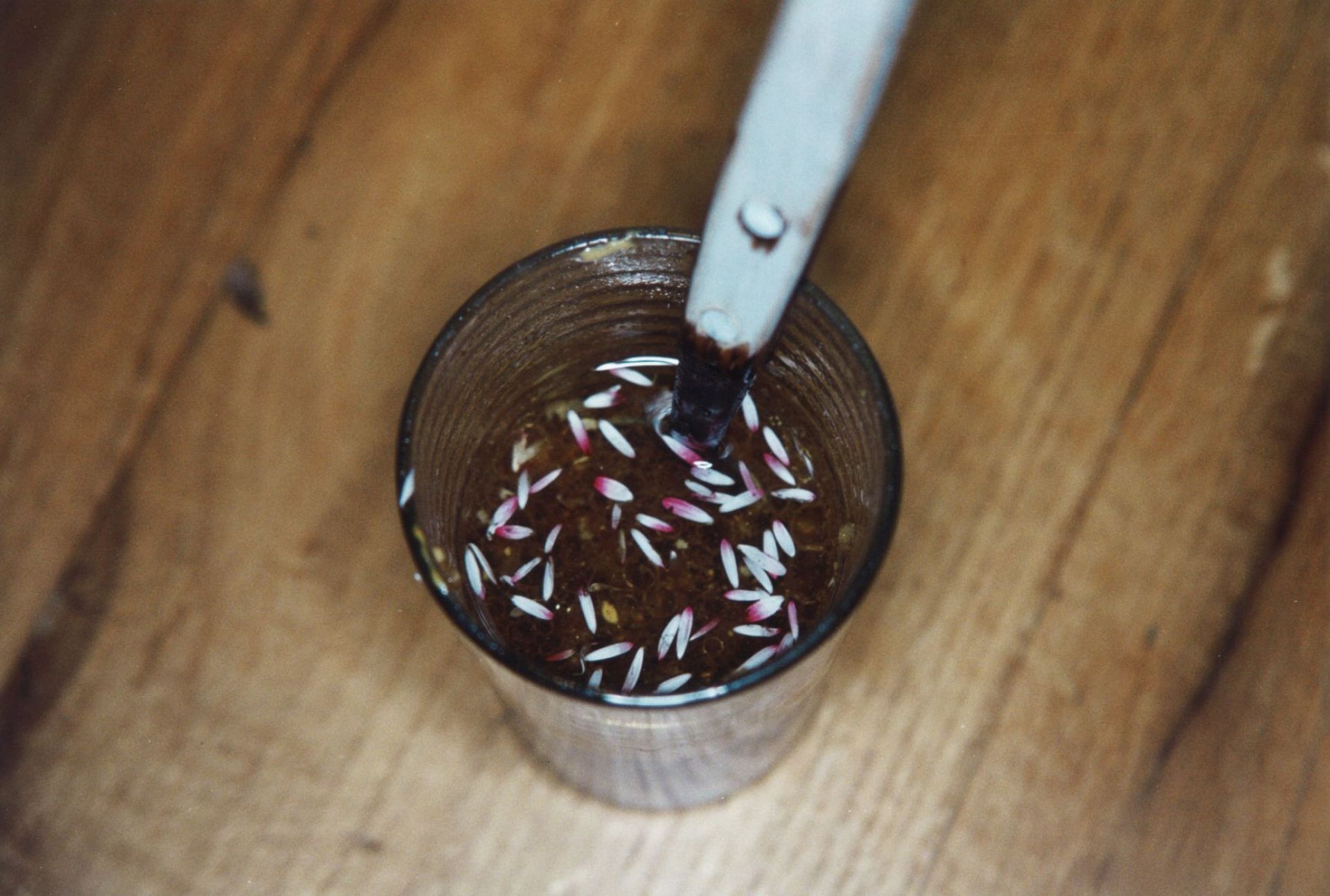 Olivenöl, Weißweinessig, 1 EL Sojasoße, 1 Knoblauchzehe gepresst, 1,5 TL Zitronensaft, 1 EL Senf, Salz und Pfeffer, vielleicht etwas Balsamico und GÄNSEBLÜMCHEN BLÜTENBLÄTTER - Märchenhaft!