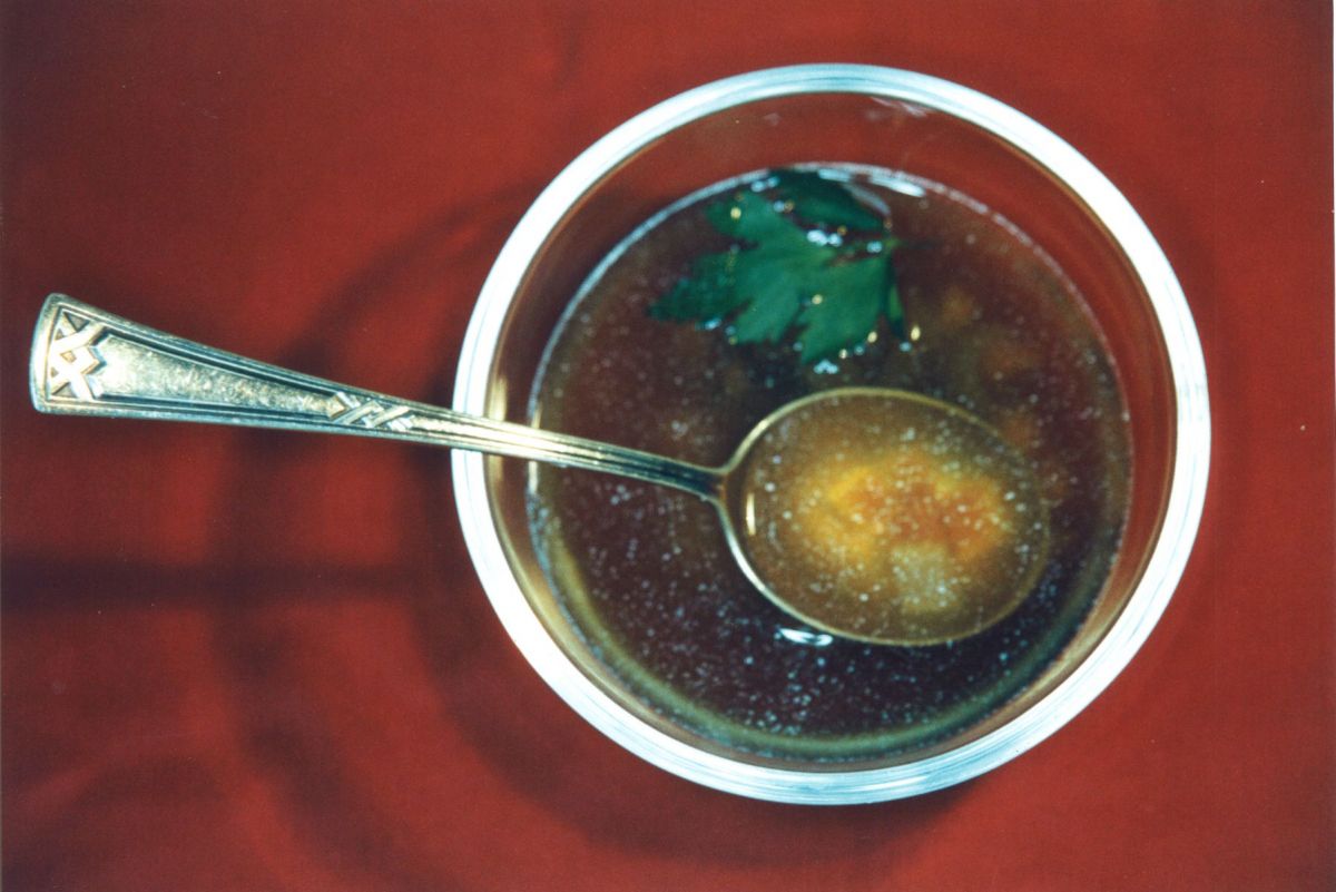Im Prinzip wird klare Brühe gekocht - wie Hochzeitssuppe - nur nicht auf Beinscheibe, sondern eher auf magerem Rind(suppen)fleisch, damit sie klar bleibt und nicht durch Mark und Zadder eintrübt. Dabei darf ein Bund Suppengrün nicht fehlen und für das gute Gelingen und den starken Geschmack, empfiehlt sich noch ein Glas Fleischfond – denn soviel gutes Fleisch kann man gar nicht bezahlen, wir hier eigentlich nötig wäre.