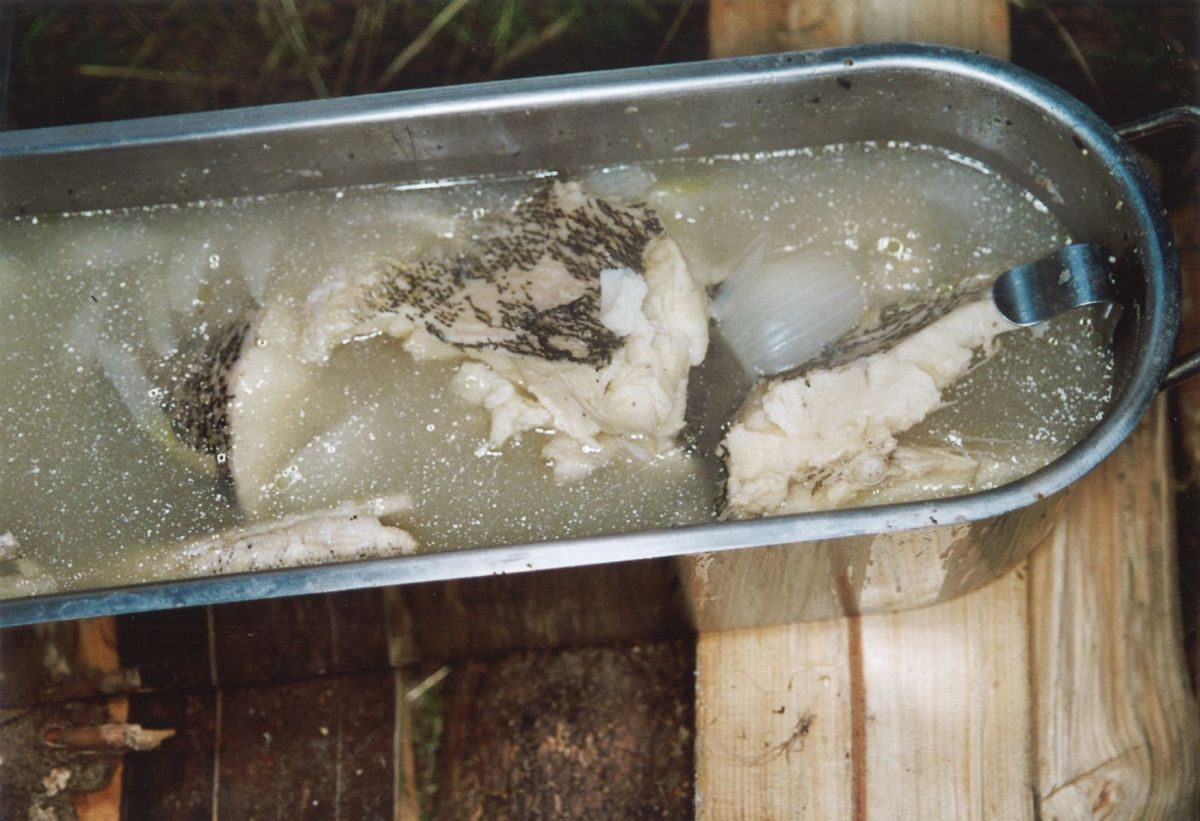 Der Fisch gart – vielmehr, er zieht in 20 Minuten gar - und zwar in einem Sud aus Wasser und Weißwein, Lorbeerblatt und Wachholder, Pfefferkörnern und Salz, dazu ordentlich Zwiebeln und Möhren - und Senfkörner, die bringen aber nix, sagt Silke.