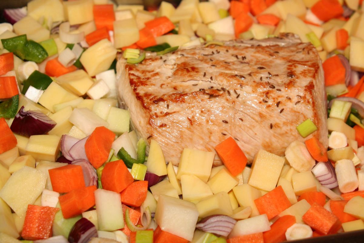 Schweinerücken auf Gemüsebett