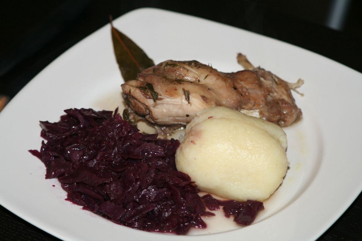 Vergesst mal die vielen Prozeduren, die die Großmütter mit Kaninchen angestellt haben. „3 Tage in Buttermilch beizen“ oder „zu weißem Fleisch gehört weißer Wein“. Hannas Therapie mit Rotwein an Kanin ist erfolgreich gelaufen und kann jedem empfohlen werden, der Probleme hat, die süßen flauschigen Hoppler in den Kochtopf zu zerren – man muss damit ja nicht Ostern anfangen!
