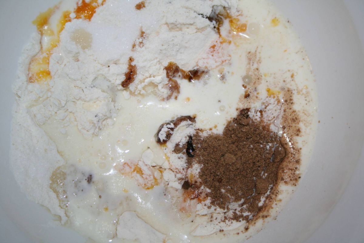Die Rosinen in Eiswein einweichen. Eigelb und Eiweiß trennen. Milch, Eigelb, Salz, Vanillezucker und Mehl glatt rühren. Das Eiweiß zu einem festen Schnee schlagen, die eingeweichten Rosinen und die Mehlmasse vorsichtig unterrühren.