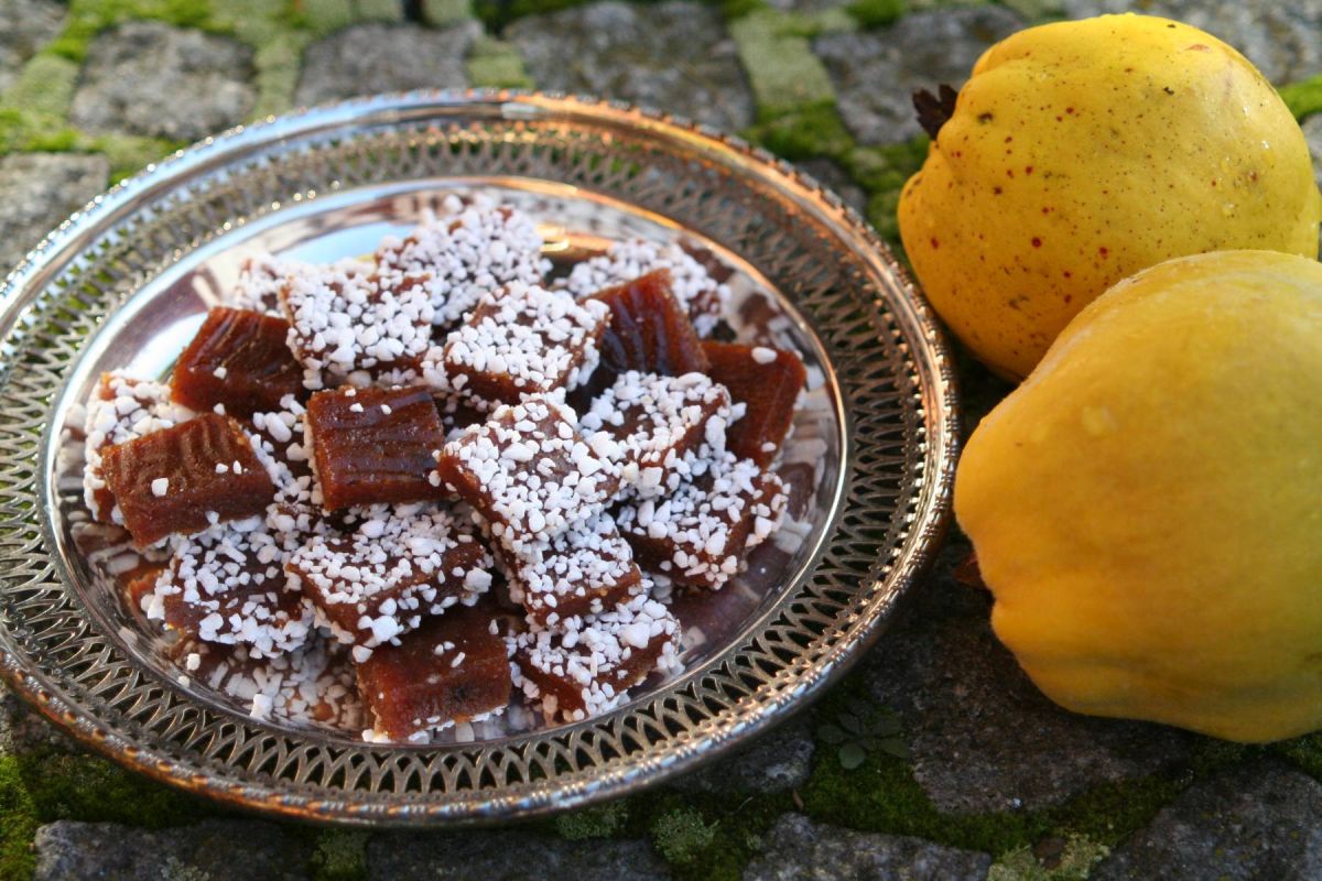 Quittengelee wird zuerst gekocht, aus dem Trester wird das Brot gemacht.