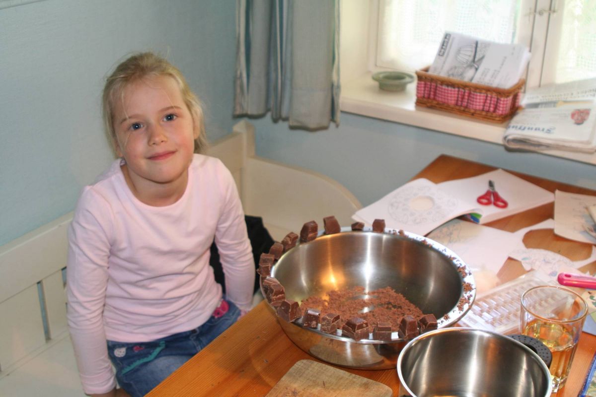 Nils hatte 6 Formen für die typischen Schokoladentafeln mitgebracht und jetzt galt es nur noch, die Kuvertüre zu schmelzen, die Zutaten in die Masse zu bröseln und fertig – weit gefehlt!