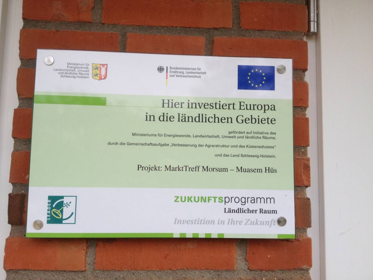 Ganz anders jetzt, wo die EU endlich auch die peripheren Gebiete ihres Zusammenschlusses entdeckt hat und der ländlich unterentwickelten bäuerlichen Kultur auf Sylt, samt der letzten Ecke in Morsum mit dem 'Zukunftsprogramm ländlicher Raum', der europäischen Gemeinschaftsaufgabe: ‚Verbesserung der Agrarstruktur und des Küstenschutzes’ in Verbindung mit dem Bundesministerium für Ernährung, Landwirtschaft und Verbraucherschutz und dem Ministerium für Energiewende, Landwirtschaft, Umwelt und ländliche Räume Schleswig-Holstein, konkret mit dem Projekt: MarktTreff Morsum – Muasem Hüs, auf die Beine helfen will – und es hier auch geschafft hat.