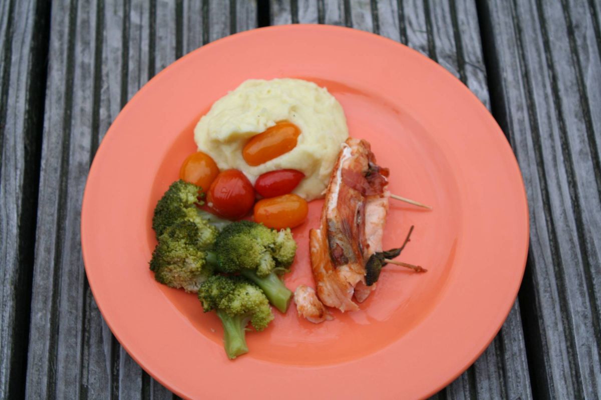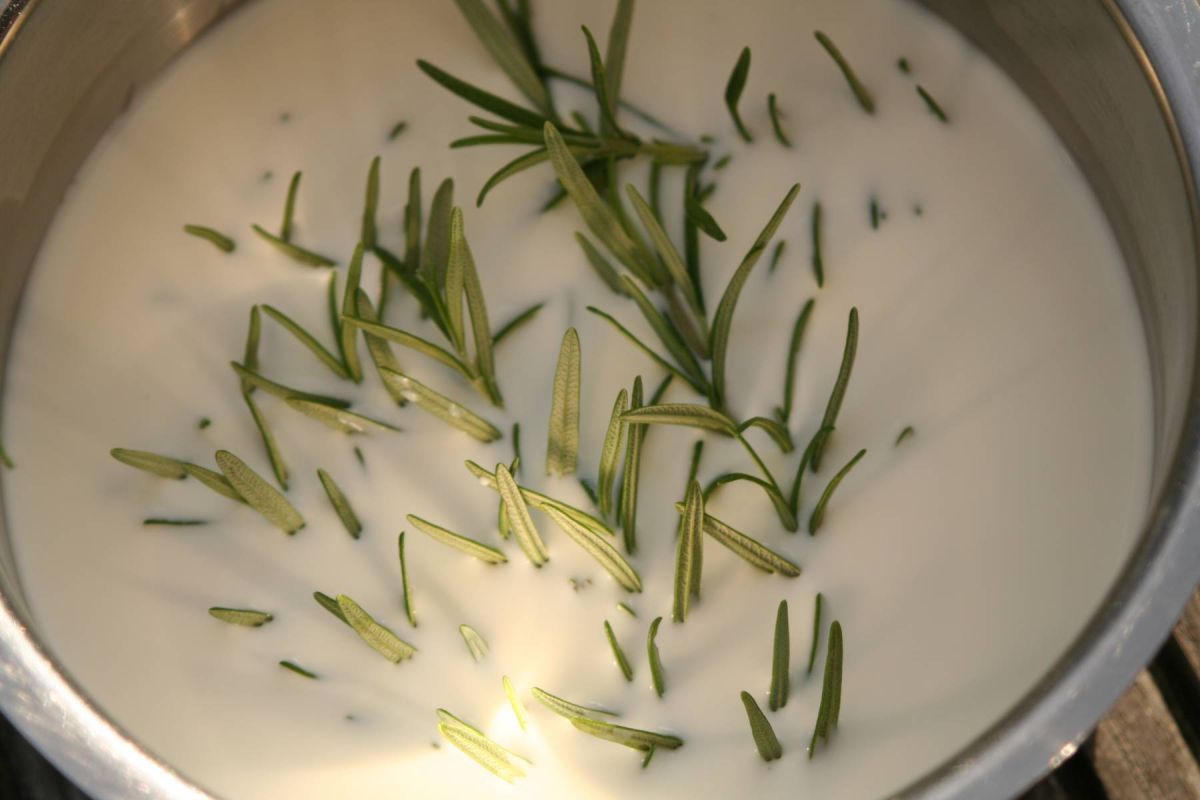 Wir hatten Broccoliröschen als butterweiche Gaumenschmeichler an fluffigem Kartoffelpü der Extraklasse: Kartoffeln weich kochen, stampfen und mit Rosmarinmilch geschmeidig rühren - Muskat durfte nicht fehlen.