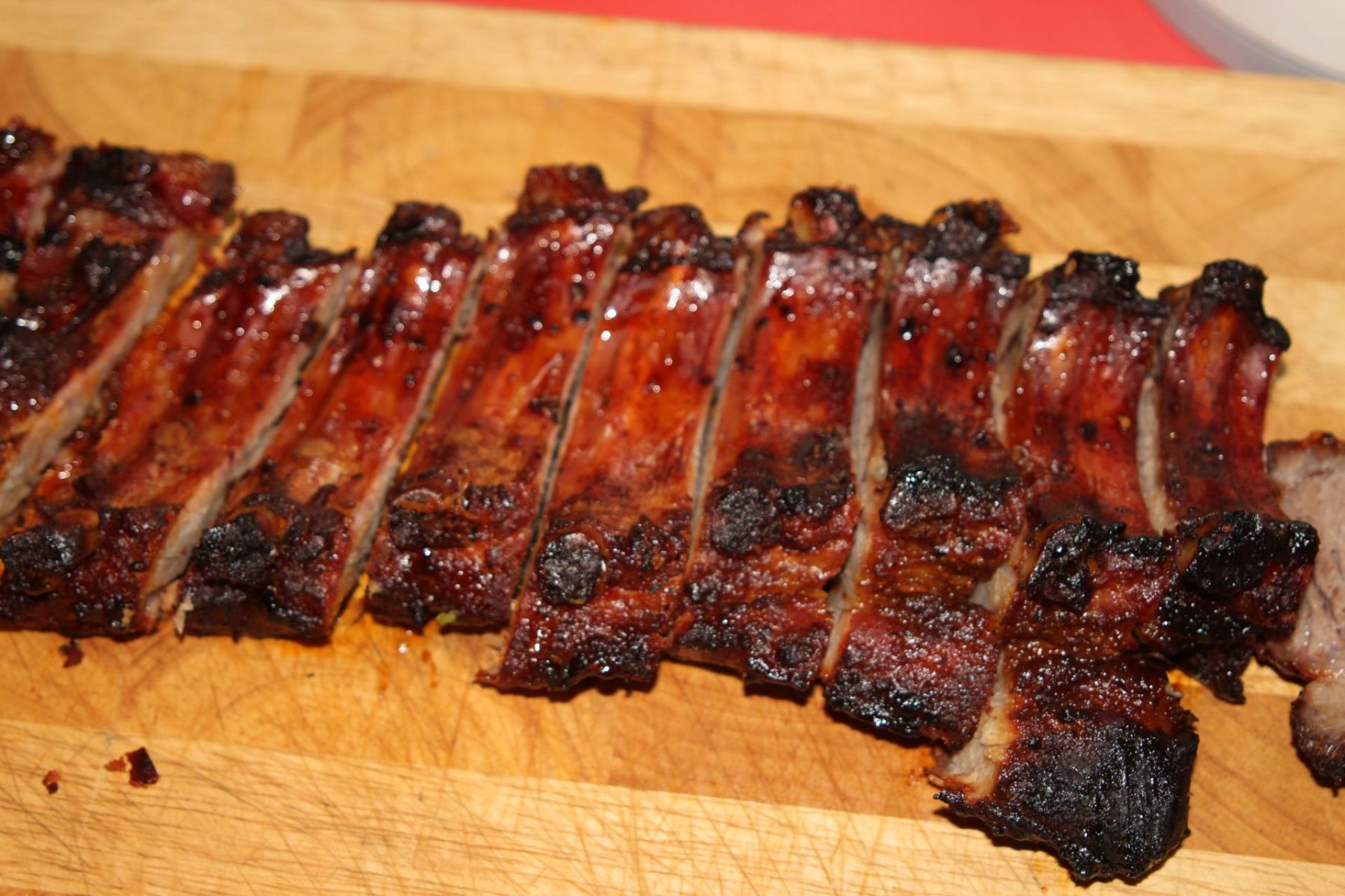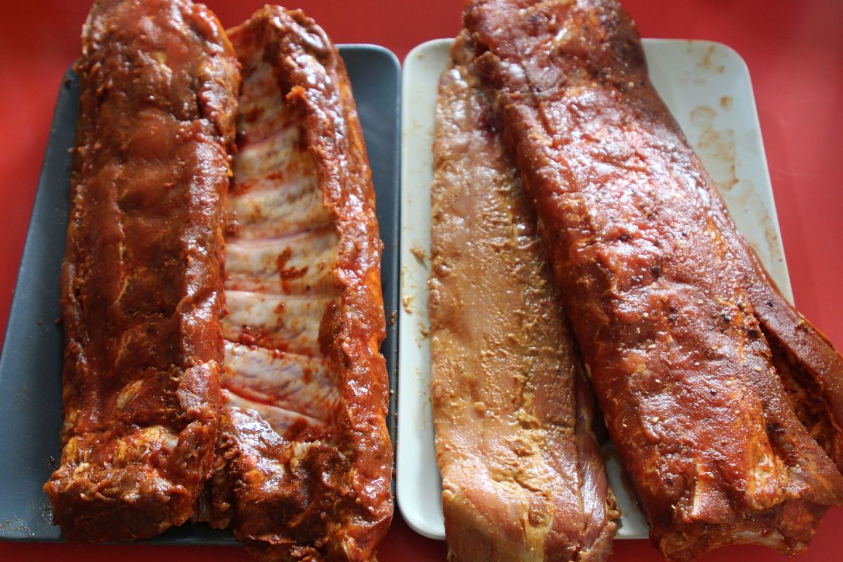 Bei Spareribs muss man schon beim Einkauf alles richtig machen. Bei 400g Gewicht pro Rippenlage bekommt man nur Knochen. 700 bis 800g sollte ein Stück auf die Waage bringen – das ist dann schön fleischig und reicht im Schnitt für eine Person.