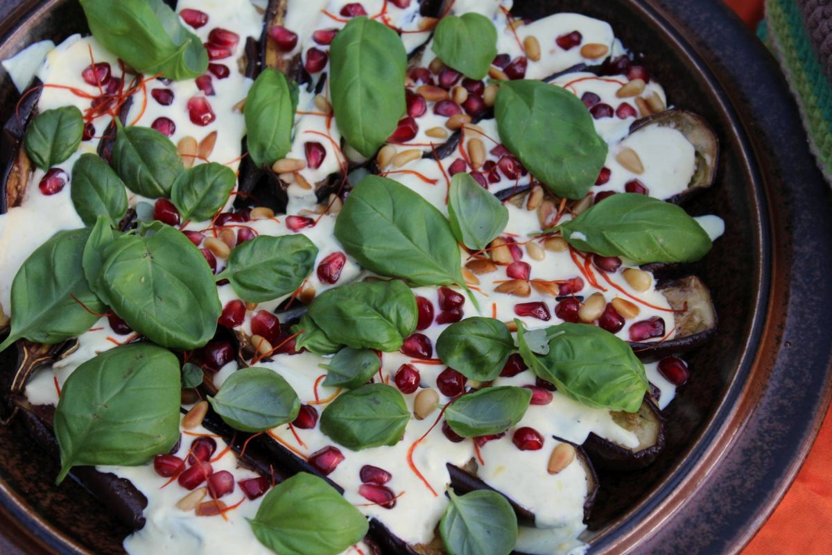 Geröstete Aubergine mit Safranjoghurt