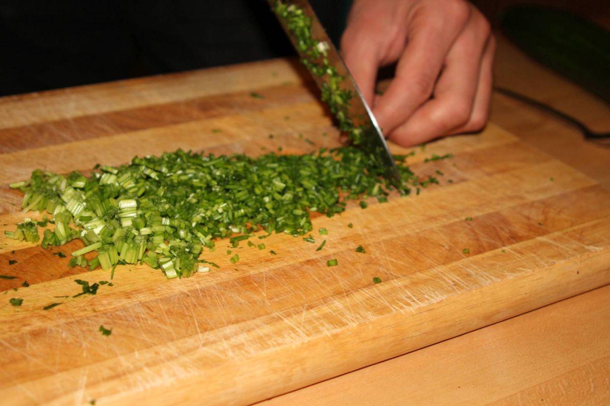 Ich schneide den Schnittlauch