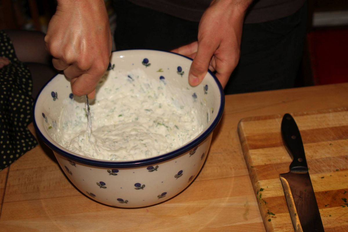 Und so geht das - hier mit Kräuterquark: