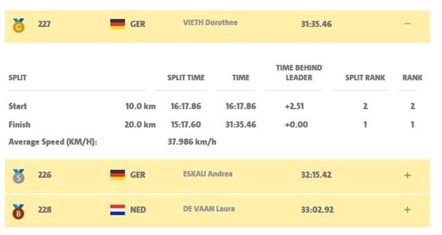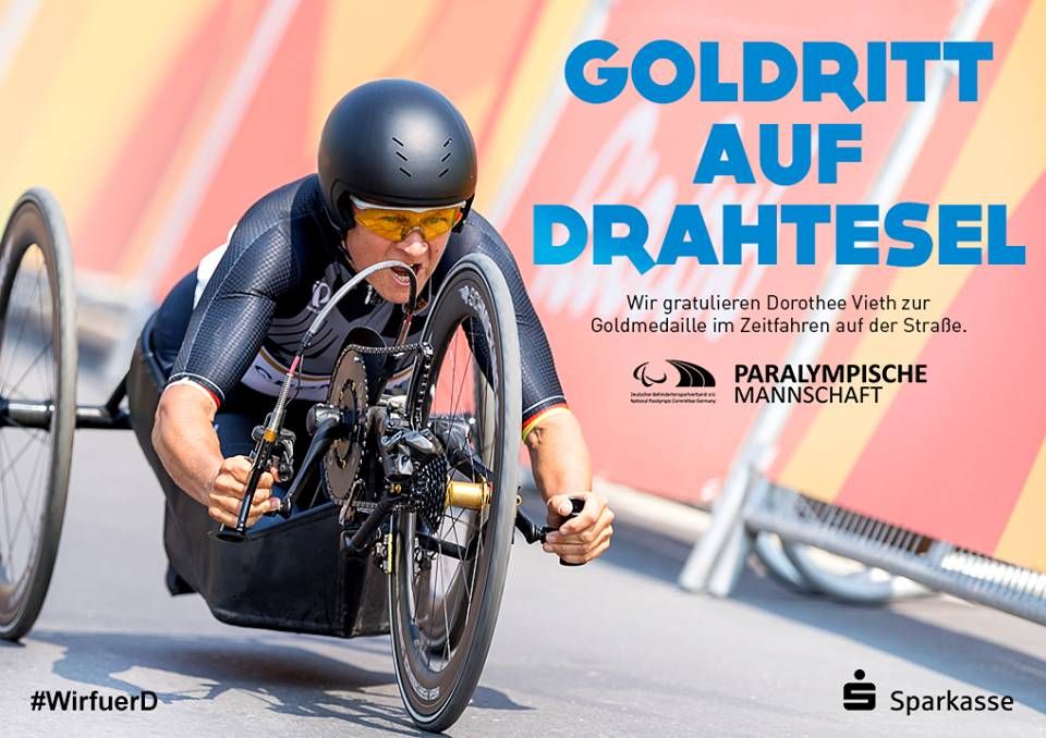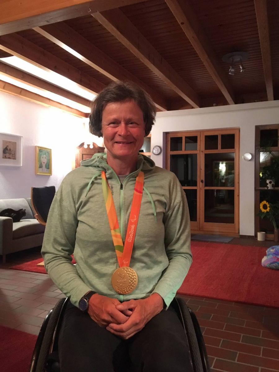 Dorothee gewinnt das Handbike Zeitfahren der Frauen in der Klasse WH4-5 souverän mit 40 Sekunden Vorsprung.