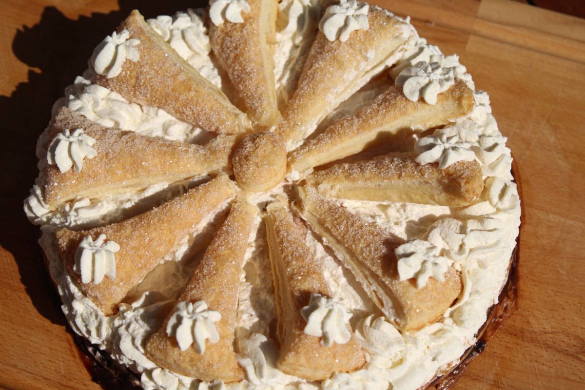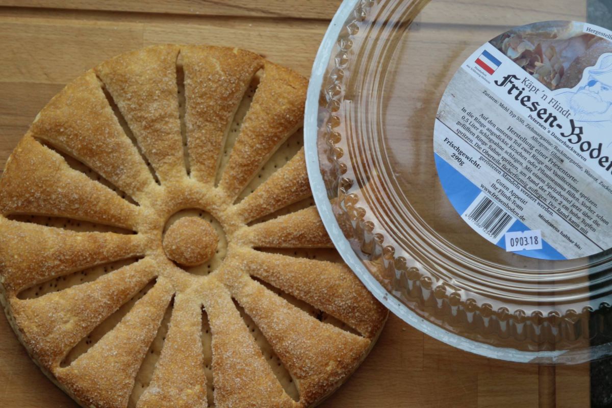 Fertig ausgebackenen Blätterteig im einschlägigen Handel erstehen (zB famila). Der ist auch schon gezuckert und gefächert für die Gestaltung der Oberseite.