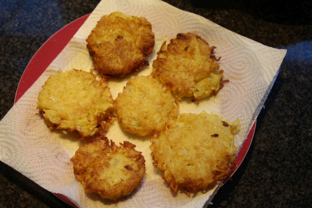 In der Pfanne mit Öl ca 10cm große Kleckse goldbraun ausbraten – ggf auf Küchenkrepp entfetten – sowas von super!