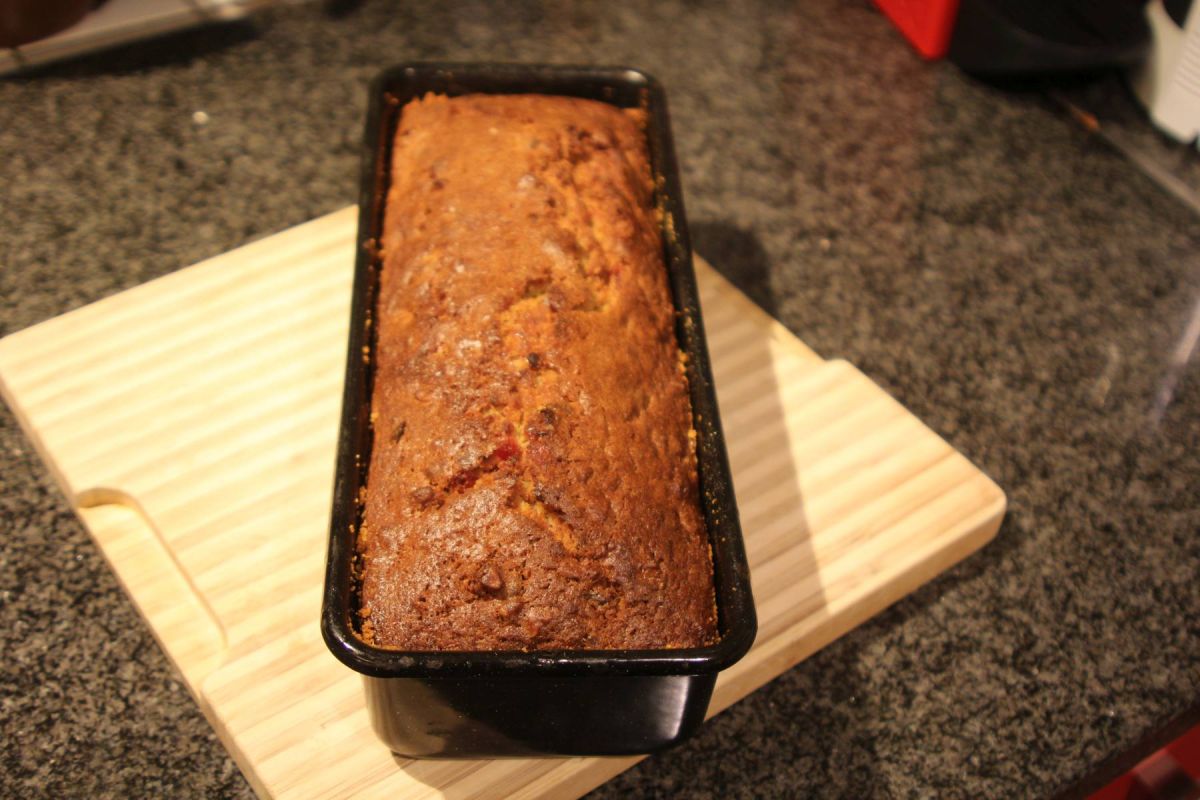 Nacheinander die Eier und zuletzt den Madeira unterrühren. Das Mehl mit der Speisestärke und dem Backpulver sieben und mit den Rosinen mischen. Die Kirschen und die Nüsse grobhacken und mit dem Salz, dem Zimt und dem Kardamom zum Mehl geben. Das Mehlgemisch unter die Buttermasse ziehen und in die Kastenform füllen. Den Kuchen auf der zweiten Schiene von unten 20 - 40 Minuten backen.