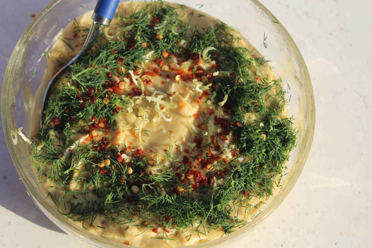 Zwiebeln und Knoblauch schälen und kleinschneiden. In einer Pfanne mit Olivenöl erhitzen. Pinienkerne, Kreuzkümmel und Zucker dazugeben. Alles einige Minuten bei mittlerer Hitze dünsten, bis die Zwiebeln weich sind. Diese Mischung zu den Linsen geben und alles mit dem Stabmixer pürieren. Mit Zitronensaft abschmecken und mit gehacktem Dill und Chiliflocken bestreuen.