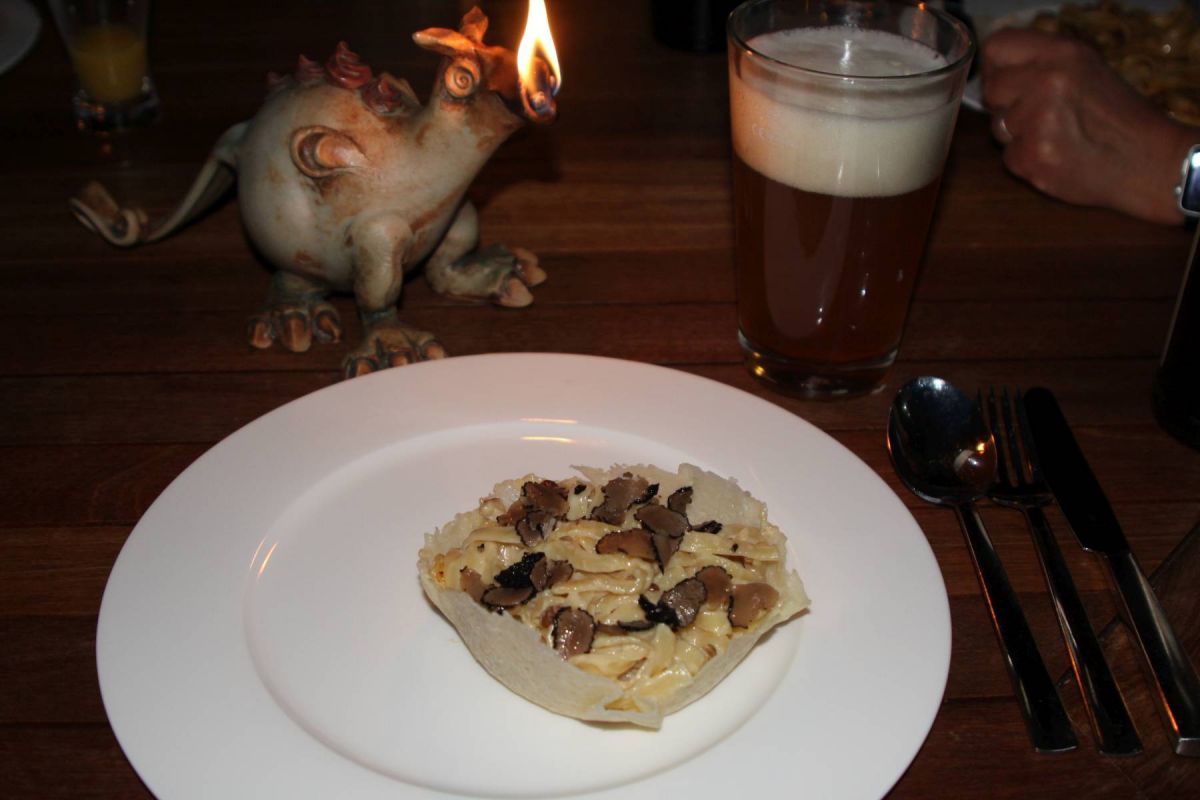 Dabei müssen es nicht Bandnudeln mit schwarzem Sommertrüffel an Sahnesoße sein. Spaghetti mit Tomatensoße passen auch gut.