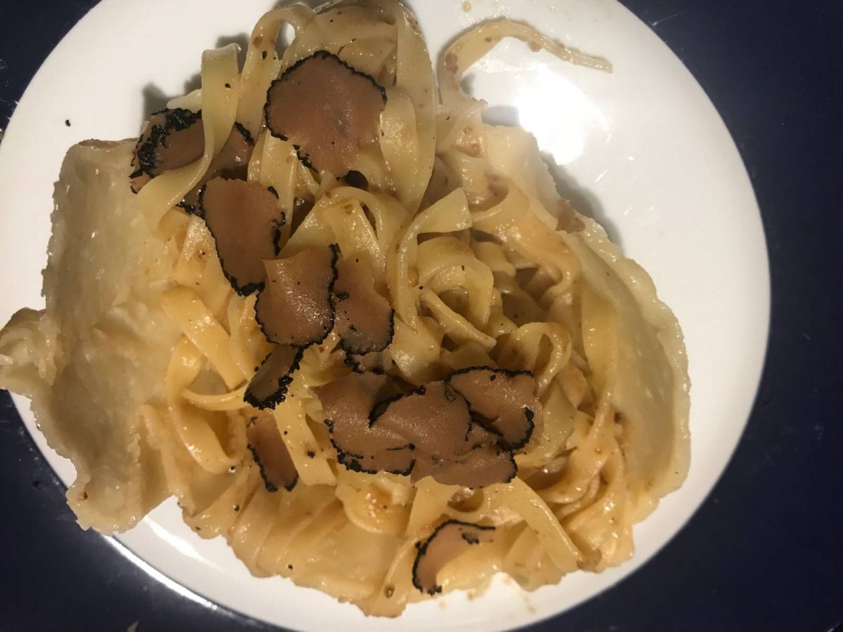 Parmesanschüssel mit Bandnudeln und Trüffel