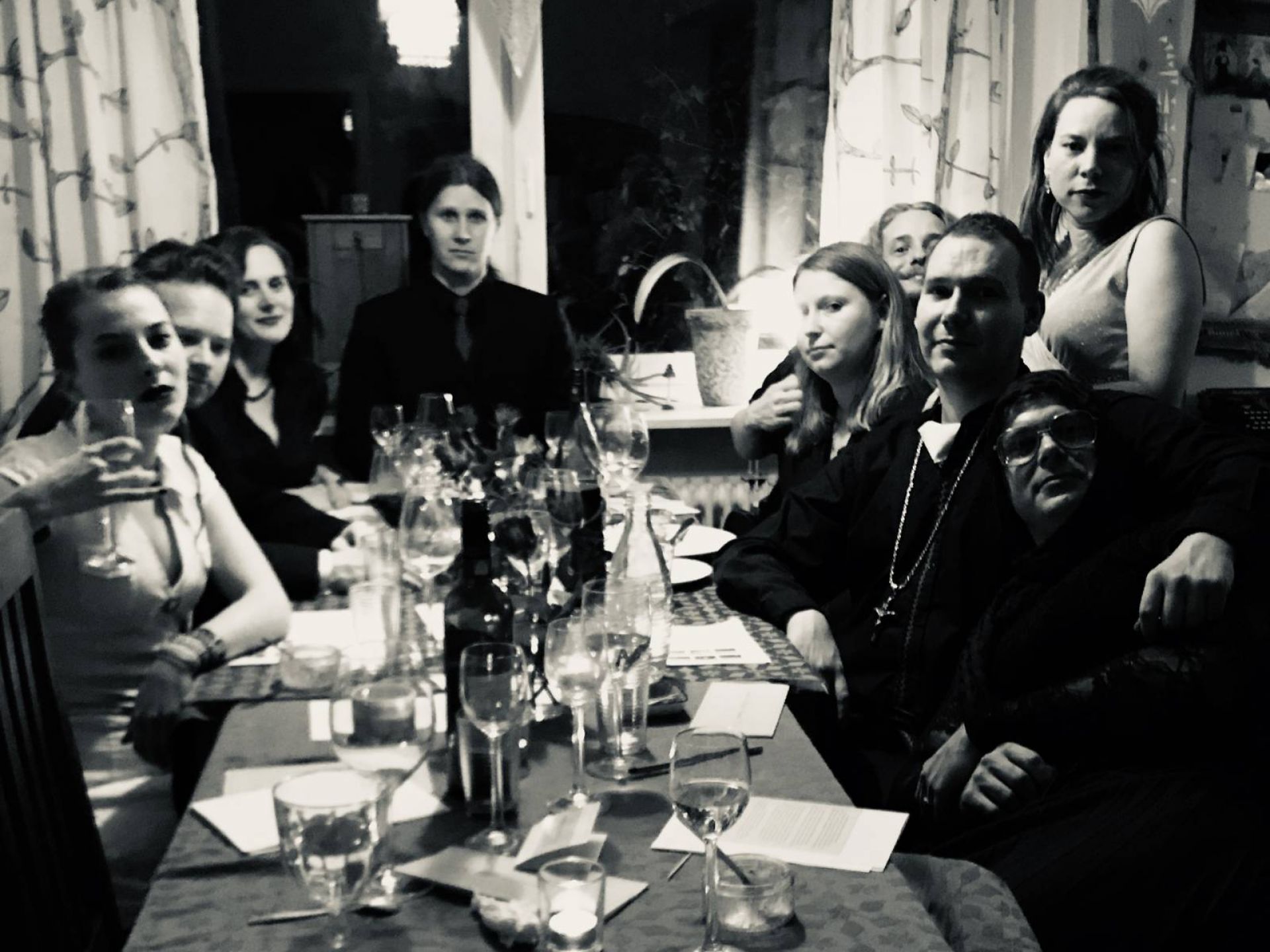Stattdessen kamen alle kostümiert, hatten die richtige Parole, um eingelassen zu werden, parat und warfen sich in die Rollen, die ein Rollenbuch am jeweiligen Platz ihnen vorgab. Da erfuhren sie dann im Laufe des Spiels – zu jedem Gang –weitere Geheimnisse über sich selbst, waren aufgefordert, Hinweise ins Spiel einzubringen und durften am Ende mitraten, wer von ihnen der Mörder war.