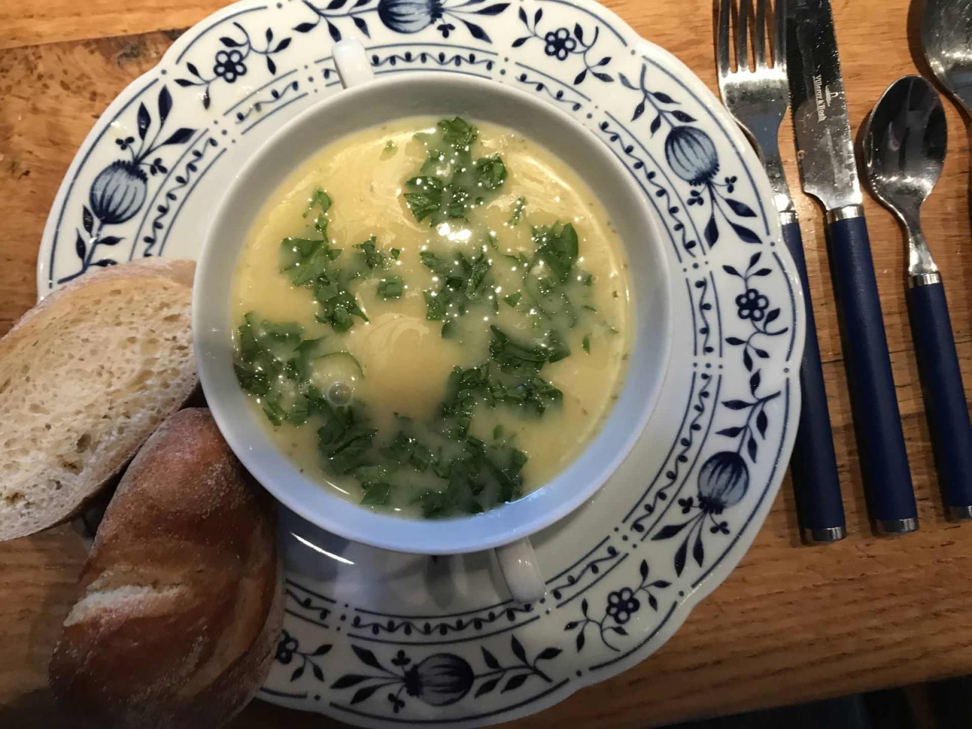 Die Österreichische Knoblauchsuppe auf der Hütte wärmt und hält einem danach lästige Drängler vom Hals.