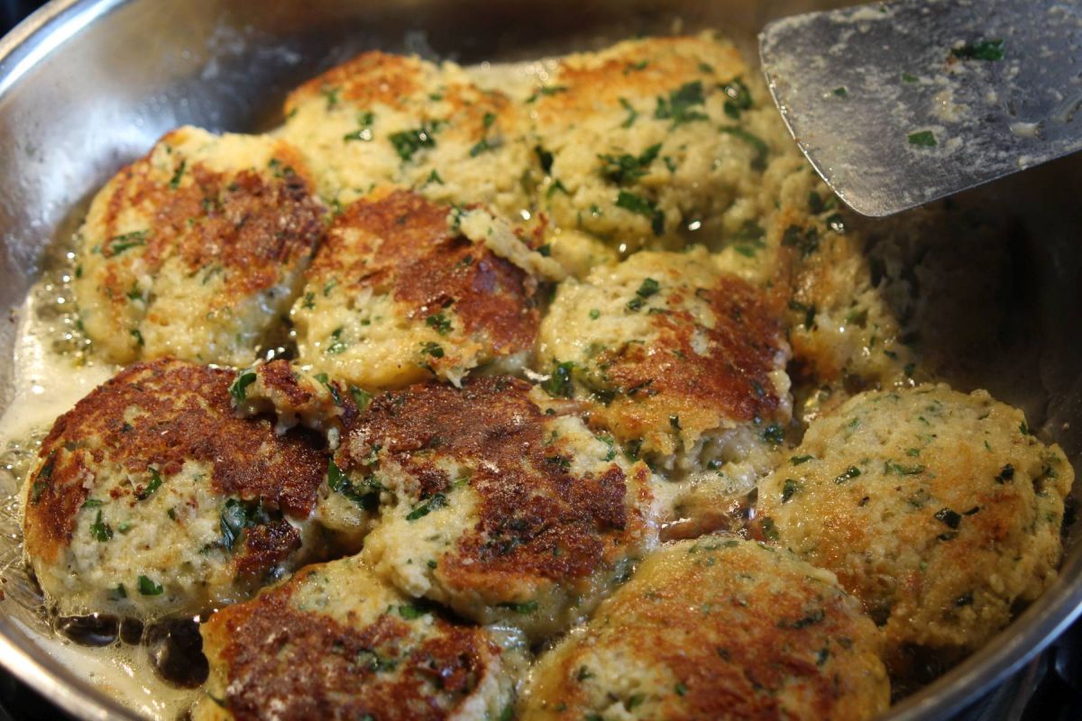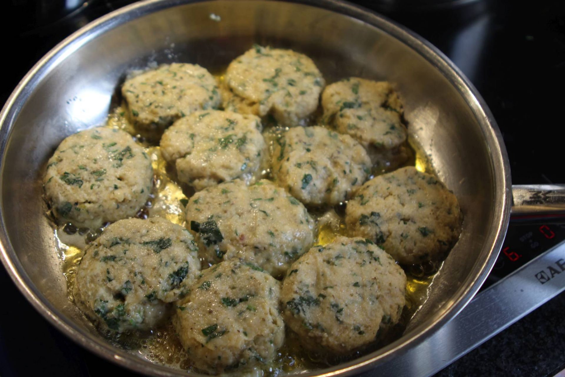 Die Knödel in einer Pfanne in Butter beidseitig goldgelb braten und mit Salat oder in einer Suppe servieren.