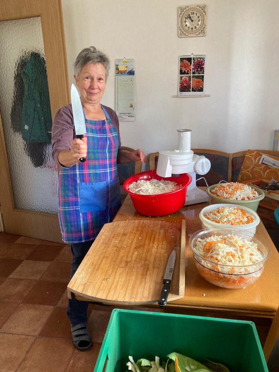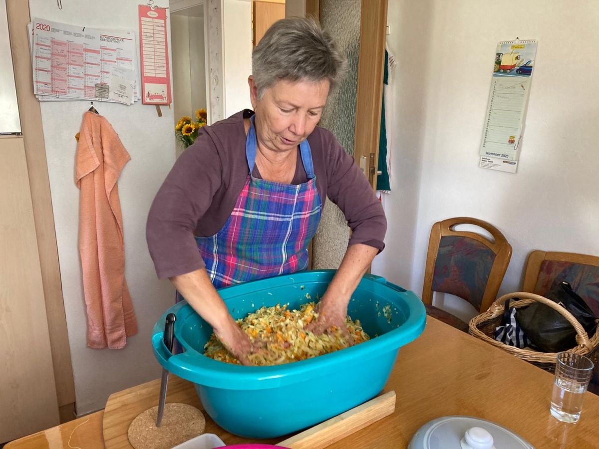 Mit der Küchenmaschine, einem eindrucksvollen Messer und anständigem Arbeitsbrett geht es in die familiäre Produktion durch die großmütterliche Zeitzeugin und deren Tochter, Melanies Mutter.