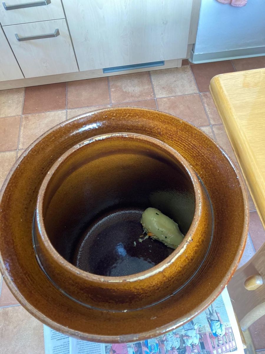 Das Rezept dringt auf Reinlichkeit und Keimfreiheit für die lange Fermentierung in Salzwasser.