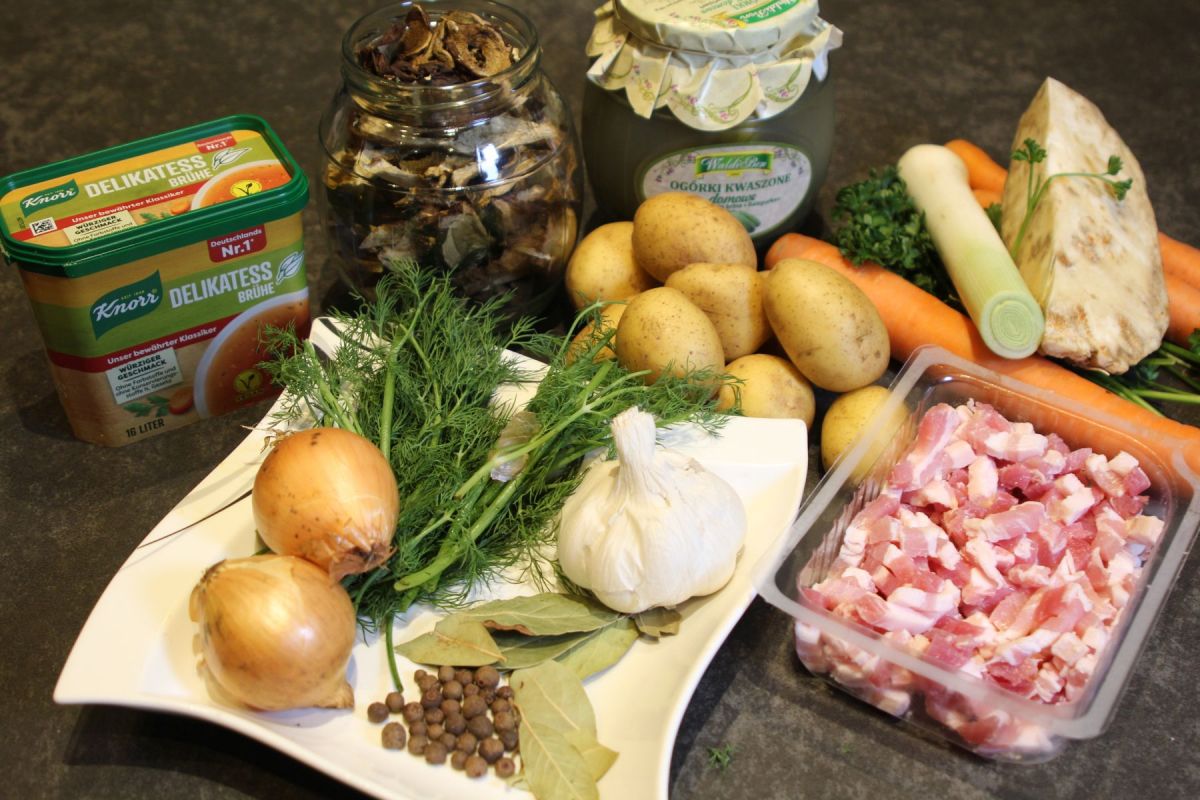 · die wichtigste Zutat und Namensgeber für die Suppe sind die eingelegten polnischen Salzgurken. Heute haben alle großen Supermärke eine Ecke mit polnischen Lebensmitteln