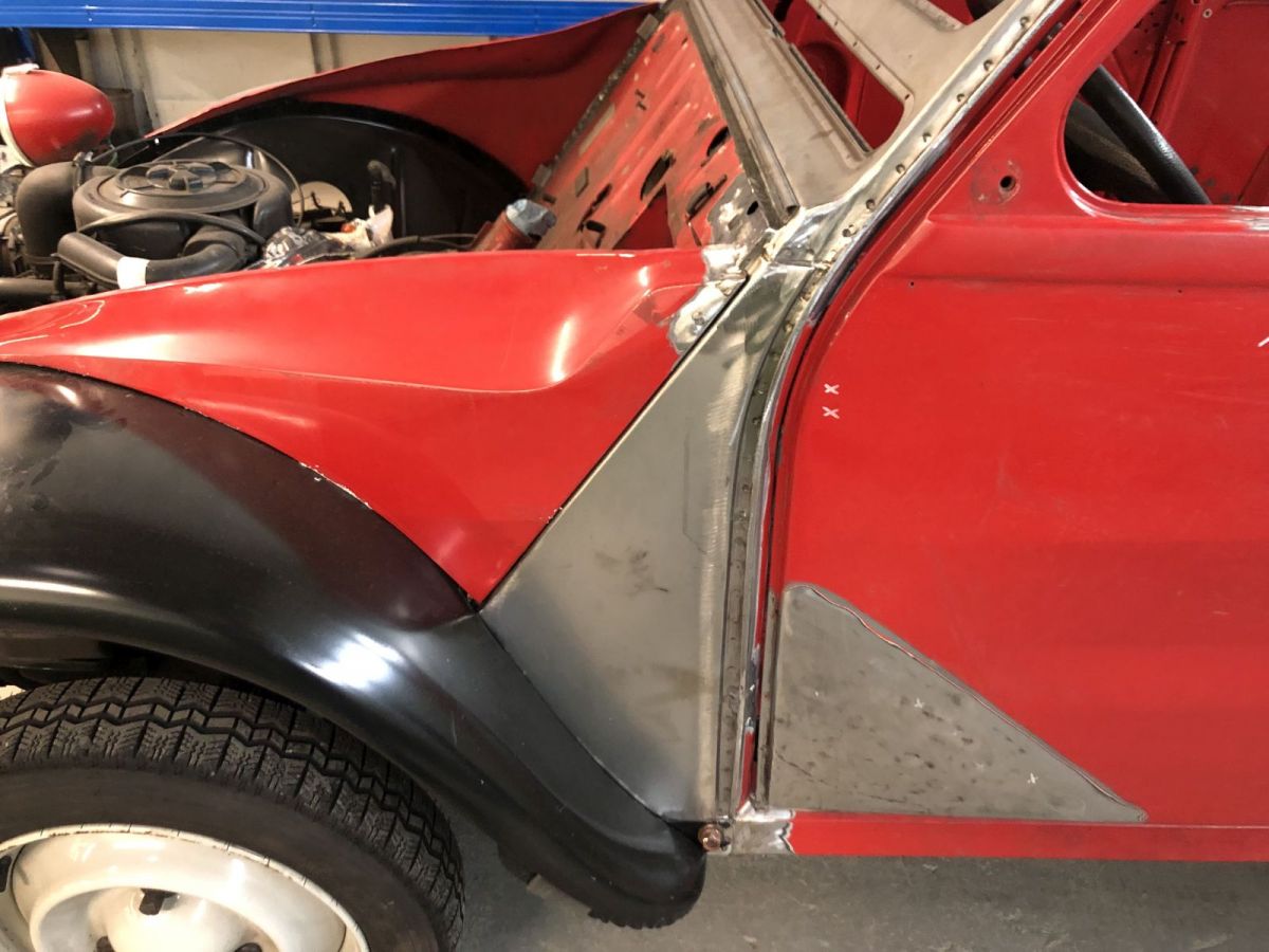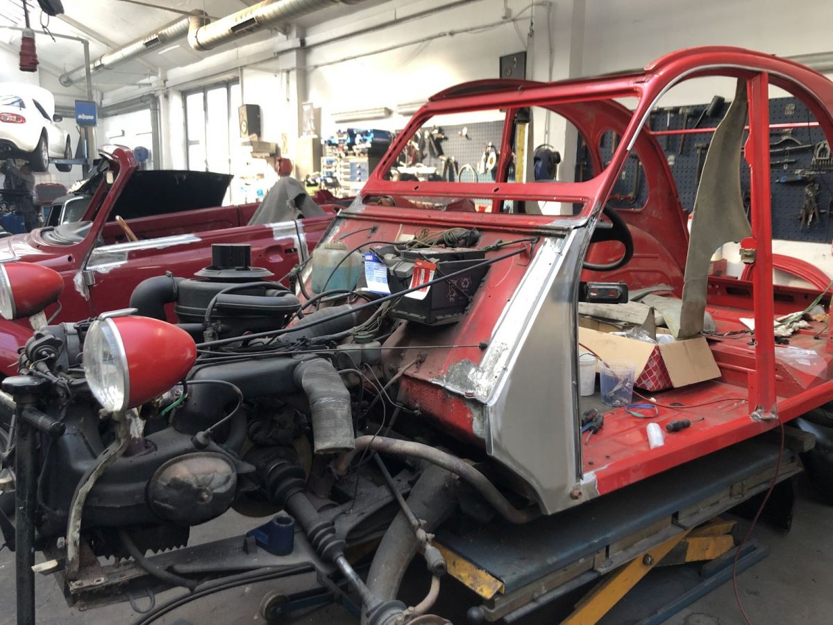 Arbeitsteilig ging das alles vonstatten – Hans: Handlanger, Schrauber, Putzer, Renovierung der Büros und Pausenraum, Porsche zum Waschen fahren, Auto zum Lacker verbringen, Teile holen und ‚Hans kannst Du mal‘ – während ausbeulen und schweißen von den Jungs erledigt wurde.