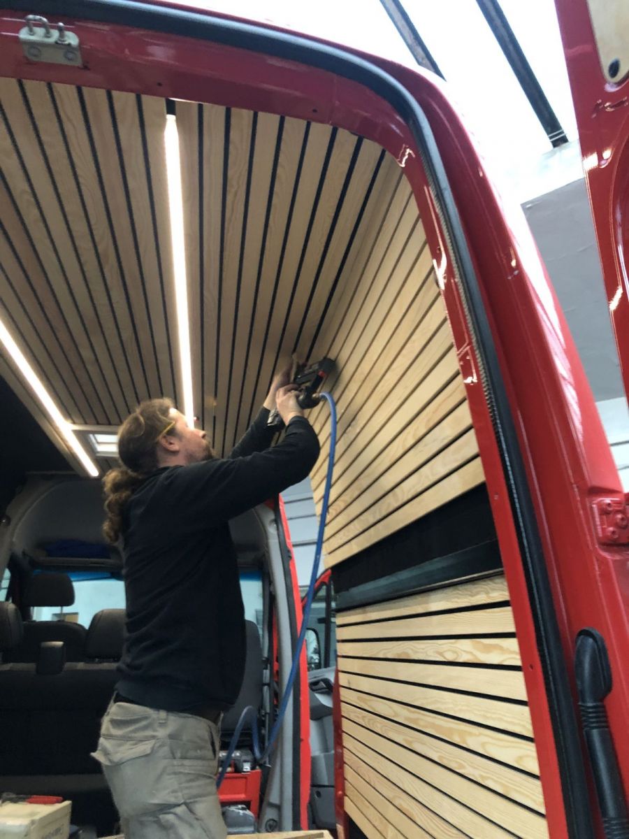 Die Werkstatt ist auch der Ort für die ersten Schritte ins Rentenalter. Der übernommene VW-Bus musste rundum ausgebeult werden und die Ente vollständig saniert werden. Der Bus steht jetzt bei Hanna und die Ente steht zum Verkauf. Zwischendurch für einen Kunden dessen Wohnmobil mit Nils zusammen ausgebaut - das hat Spaß gemacht und Geld reingebracht.