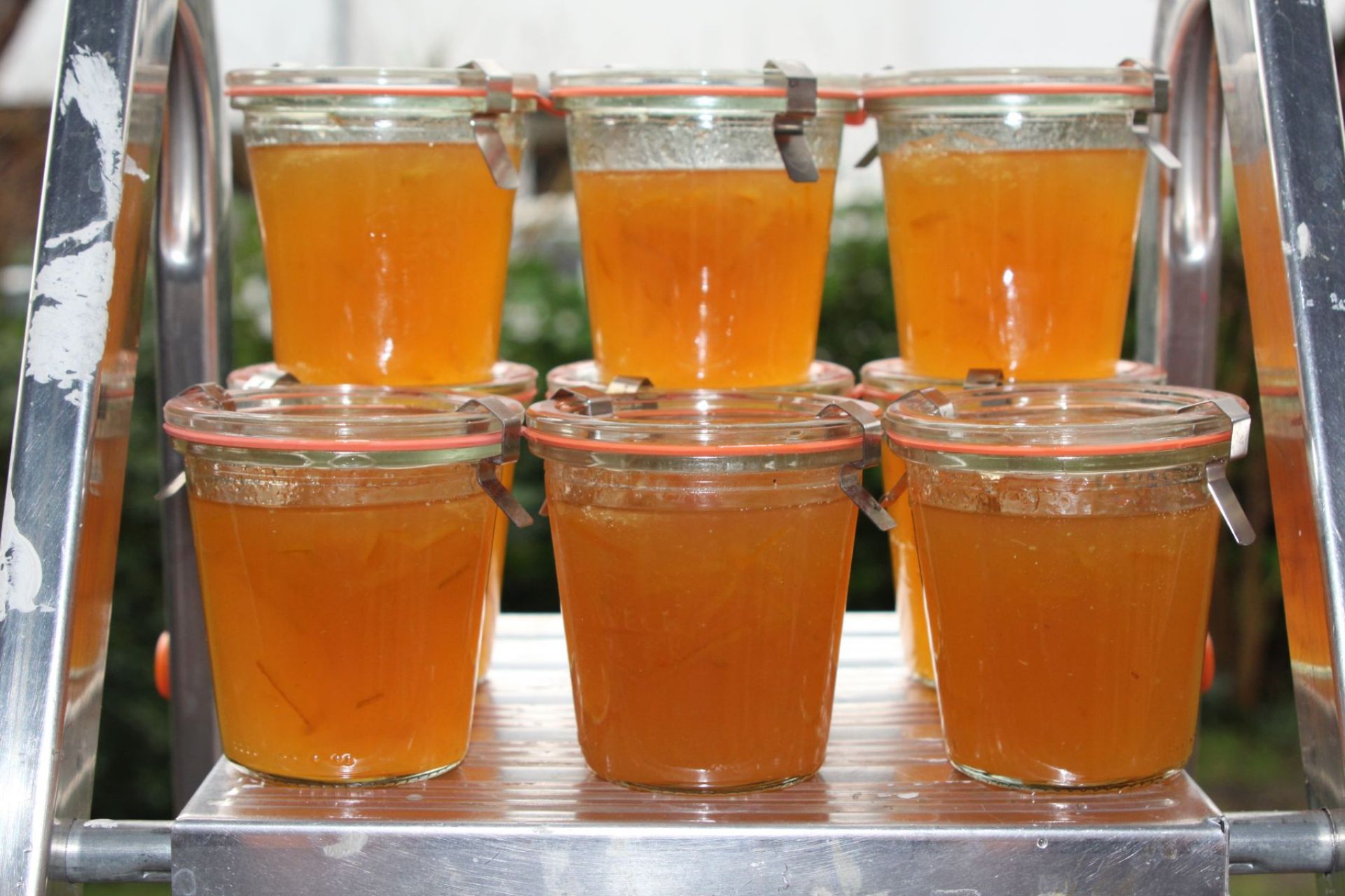 Der Vorrat von 15 bis 25 Gläsern erfreut die Verwandtschaft und sorgt für Sonne am Frühstückstisch, bis der Sommer dann wirklich kommt.