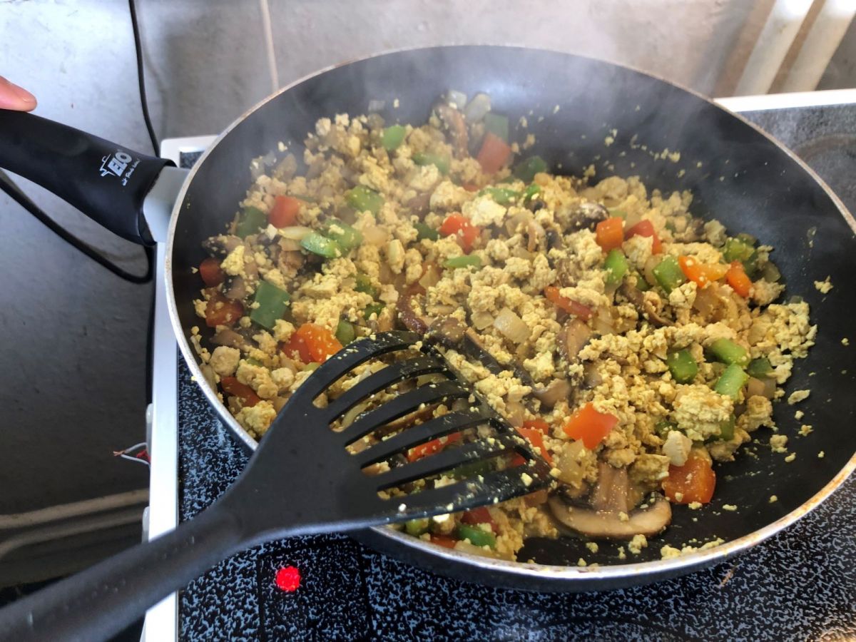 (Ronja: „TofuScramble mit der Hand bröseln, damit die RühreiTextur stimmt!“).