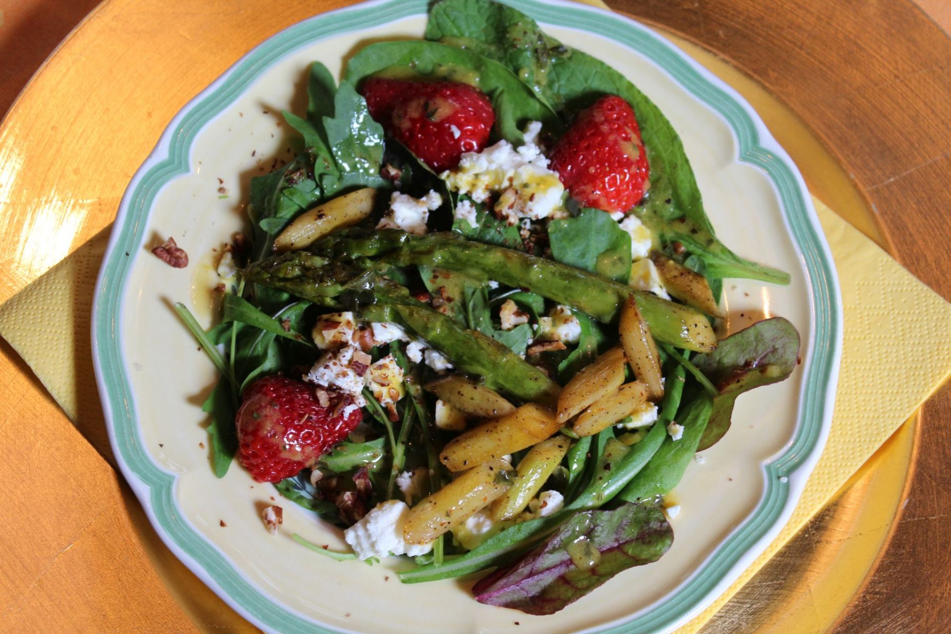 mit grünem Spargel, Erdbeeren und Feta