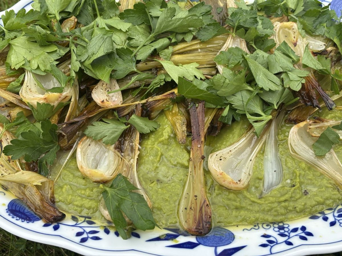 Erbspüree mit Frühlingszwiebel