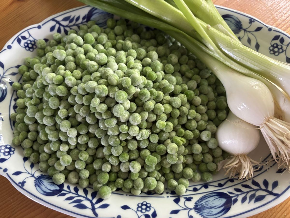 glasig andünsten - 300 g Erbsen aus dem Tiefkühlregal