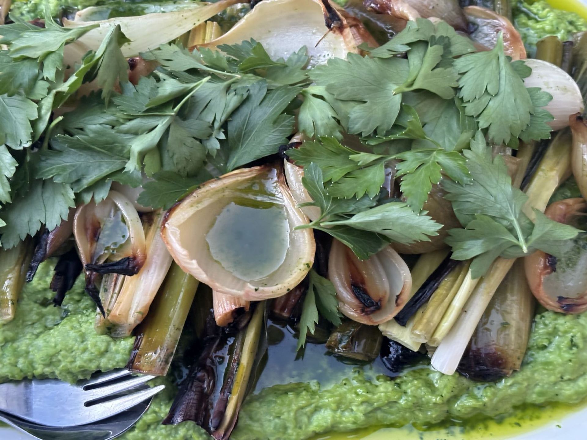 Erbspüree mit Frühlingszwiebel